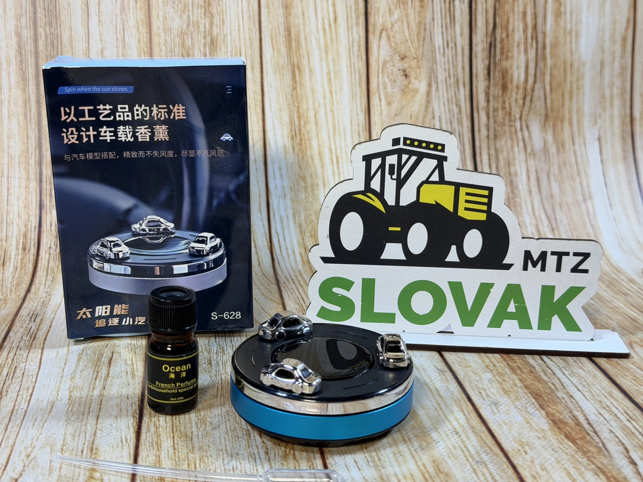 Автомобільний ароматизатор на сонячній батареї S-628 (обертовий, з ароматом) Короткий опис: Автомобільний ароматизатор S-628 працює від сонячної енергії, автоматично обертається та рівномірно поширює аромат у салоні авто. Характеристики Тип: Автомобільний ароматизатор Модель: S-628 Живлення: Сонячна батарея Функція: Обертання при освітленні Комплектація: Ароматизатор + флакон аромамасла Місце встановлення: Панель приладів Стан: Новий