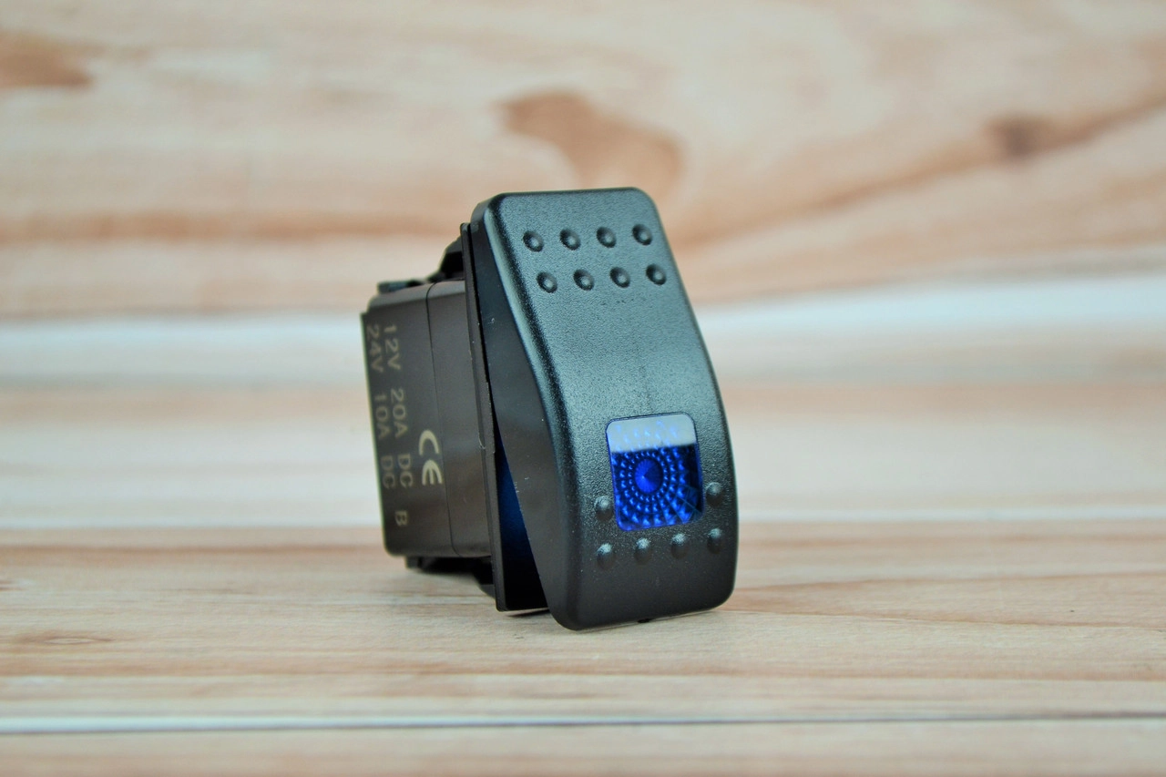 Кнопка автомобільна 2-х позиційна, на 3 контакти Синя підсвітка (5см*2,5см)