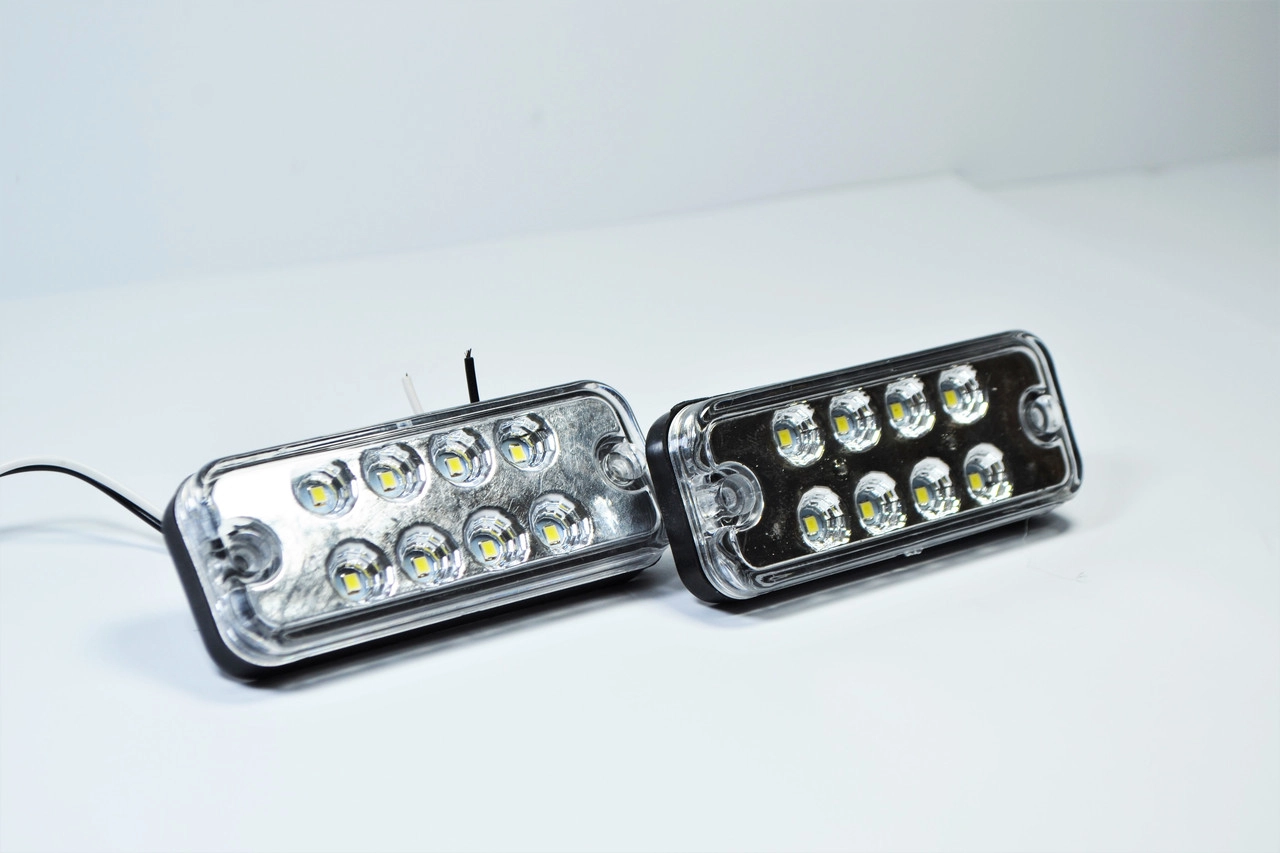 Підсвічування різної техніки, підсвічування салону, кабіни вантажівки, заднього причепа, Підсвічування заднє тягач, підсвічування номера. Виробник: Польща Напруга 24Вольт Кількість світодіодів: 8шт Гарантія 12 місяців Розміри габарита: Ширина-4см Довжина 10см
