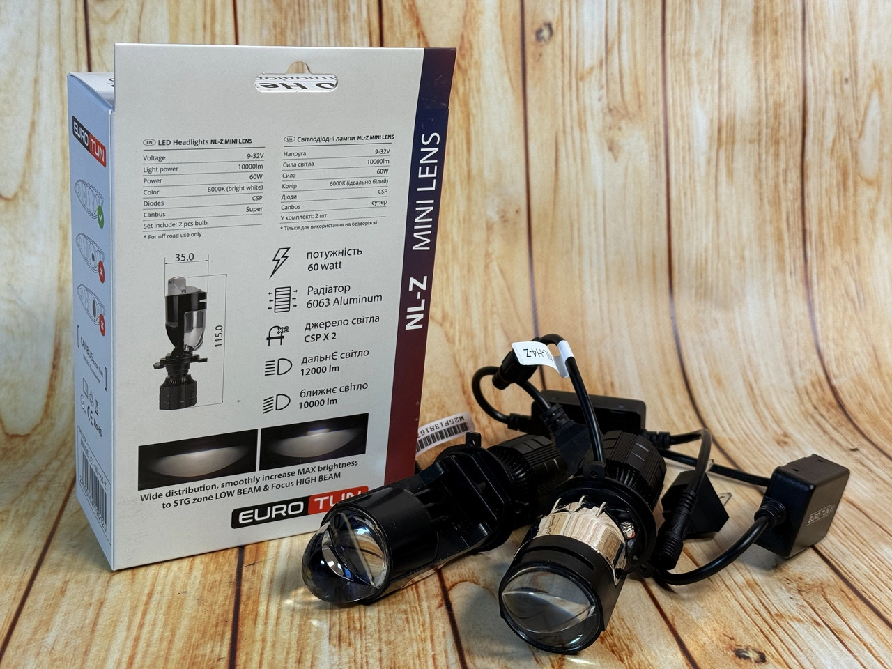 Лампа LED з лінзою H4 12V-24V 60W EUROTUN NL-Z 10000L 6000К CAN BUS радіатор з вентилят.