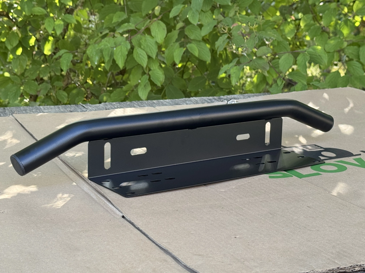 Номерний кронштейн з дугою для LED балки та LED фар Опис: Універсальний кронштейн для державного номерного знака із додатковою вигнутою дугою. Призначений для зручного монтажу LED балок, LED фар або інших аксесуарів (антени, сигнали тощо). Підходить для встановлення на авто, позашляховики, трактори, спецтехніку. Переваги: Кріплення для номерного знака + дуга під додаткове світло Універсальні отвори – підходять для більшості моделей фар/балок Міцна конструкція зі сталі, не іржавіє Легкий монтаж – без свердління кузова Характеристики: Матеріал: сталь Покриття: порошкове (антикорозійне) Колір: чорний матовий Довжина дуги: ~40 см Призначення: для номерного знака + кріплення світла