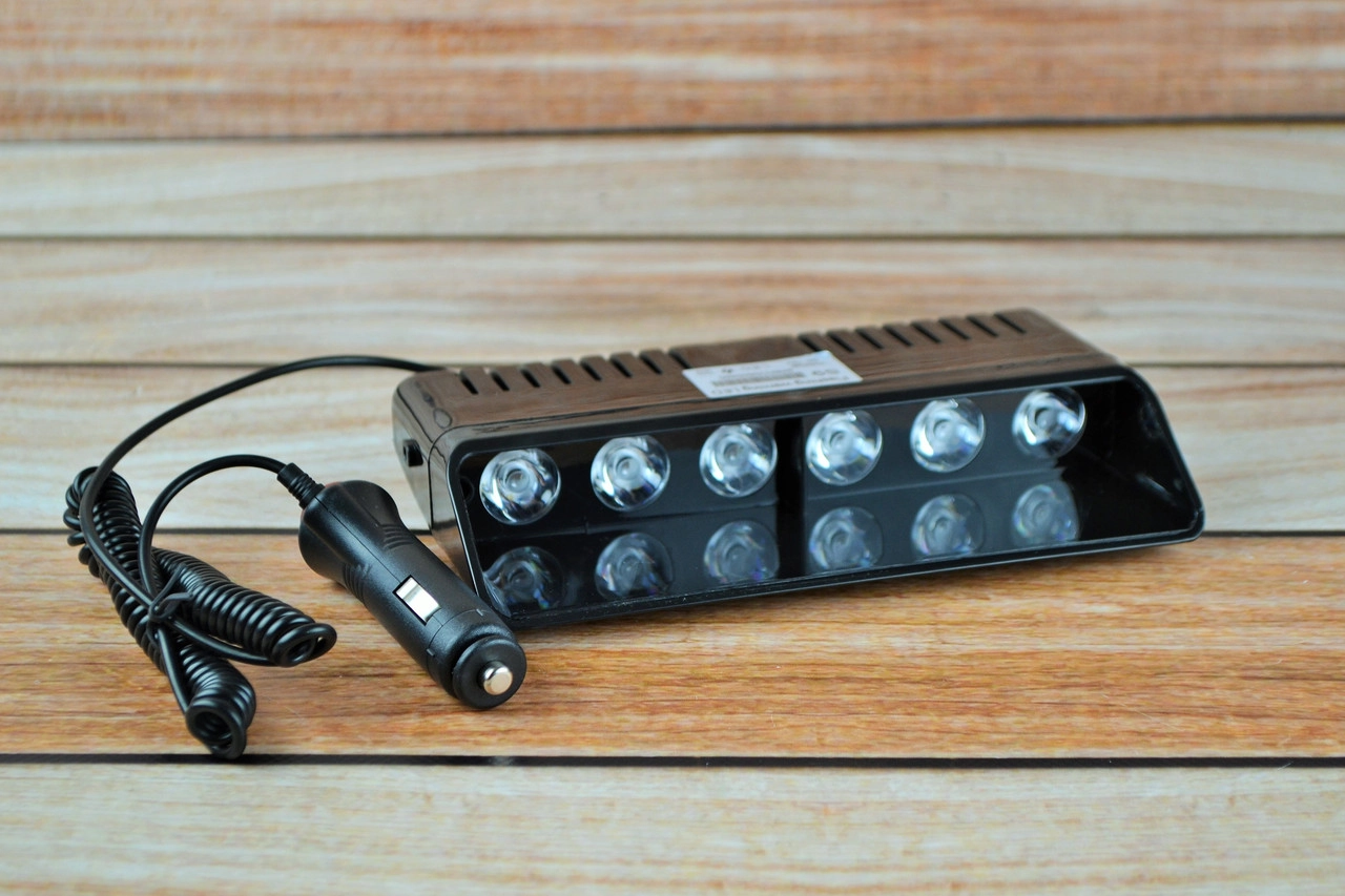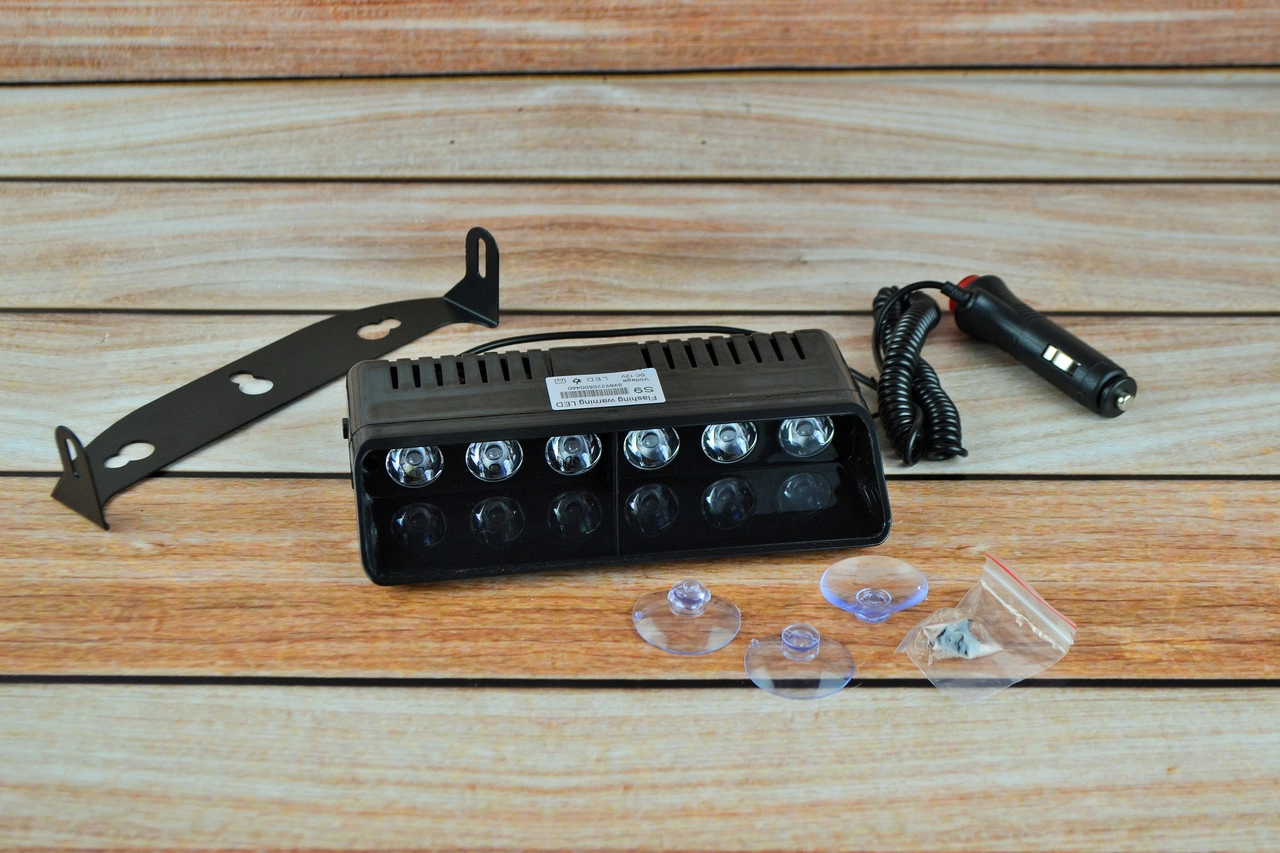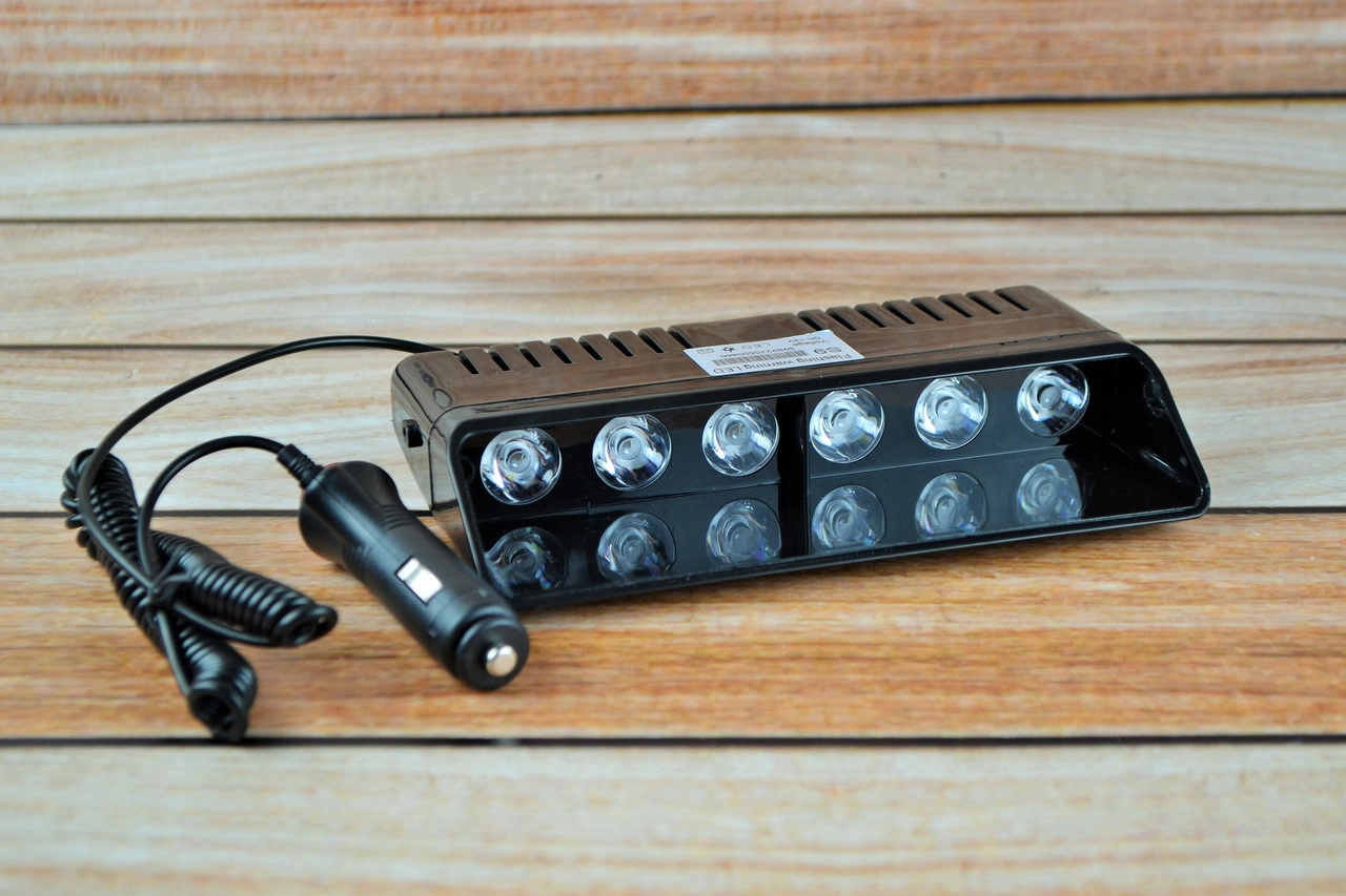 Стробоскоп у салон під лобове скло, білій S-9 Од прикурювача на липучках і кріпленні 21 см