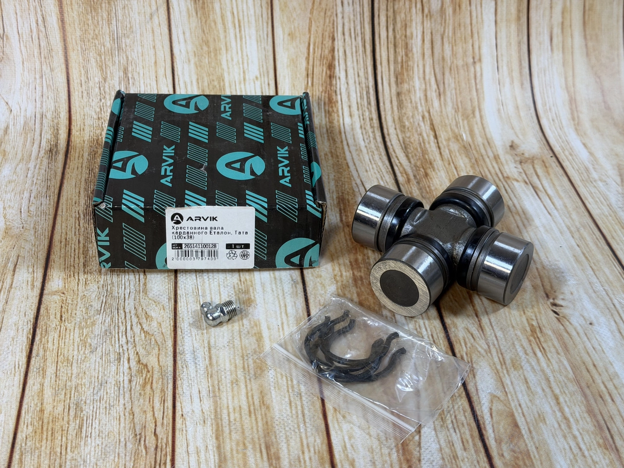 Хрестовина карданного валу Еталон / TATA ARVIK 100×38 (26514100128) Хрестовина карданного валу ARVIK 100×38 призначена для автомобілів та автобусів Еталон і TATA, забезпечує надійну передачу крутного моменту та стабільну роботу...380 ₴