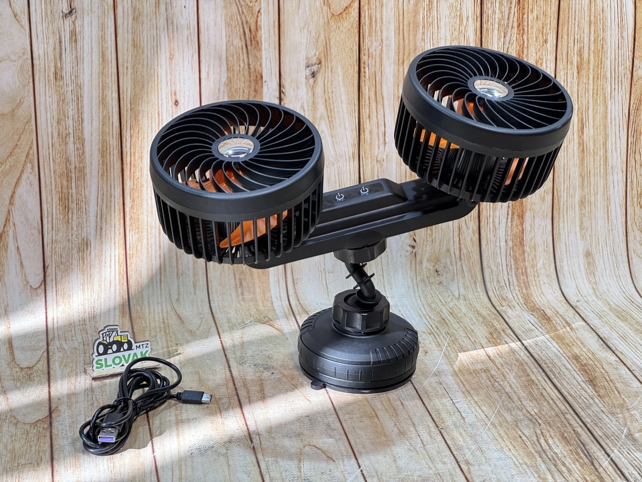 Автомобільний вентилятор Storm 13 см з двома головками на присосках (12-24V), 3 швидкості, Oreng F6206