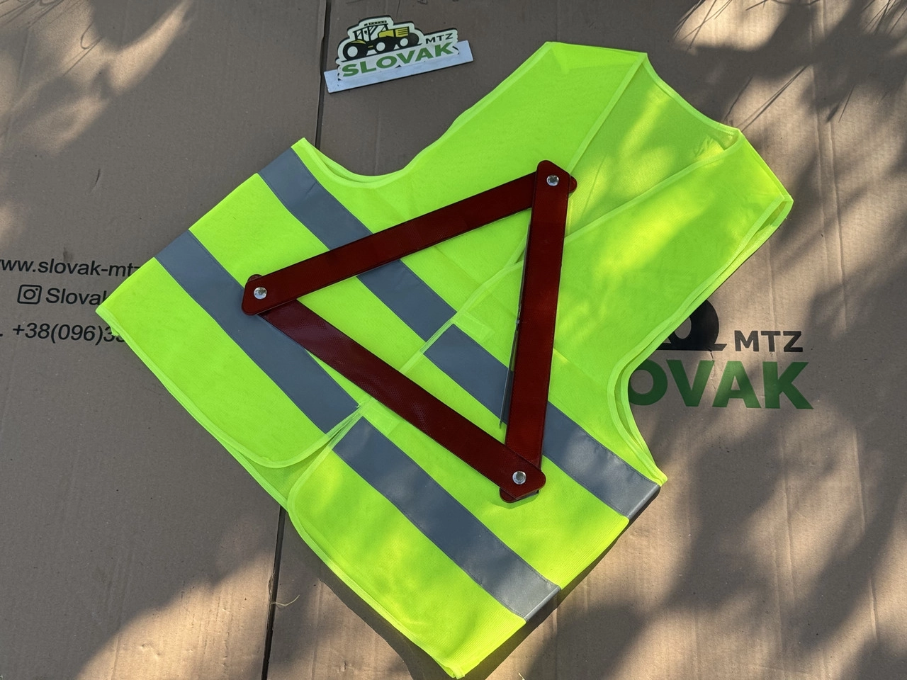 Аварійний набір: знак зупинки + жилет + чохол Опис Практичний аварійний набір для автомобіля, що включає усе необхідне для екстрених ситуацій на дорозі. Складається з аварійного знаку зупинки, світловідбиваючого жилету та зручного чохла для зберігання. Ідеально підходить для водіїв легкових, вантажних авто та спецтехніки. Комплектація ✅ Аварійний знак зупинки (відбивний трикутник) ✅ Світловідбиваючий жилет (універсальний розмір) ✅ Чохол для зручного зберігання та транспортування Переваги Відповідає вимогам ПДР Легкий, компактний, зручний у використанні Обов'язковий для перевезення в автомобілі Призначення Набір необхідний кожному водієві у разі поломки або аварії. Підвищує безпеку на дорозі та дозволяє попередити інших учасників руху.