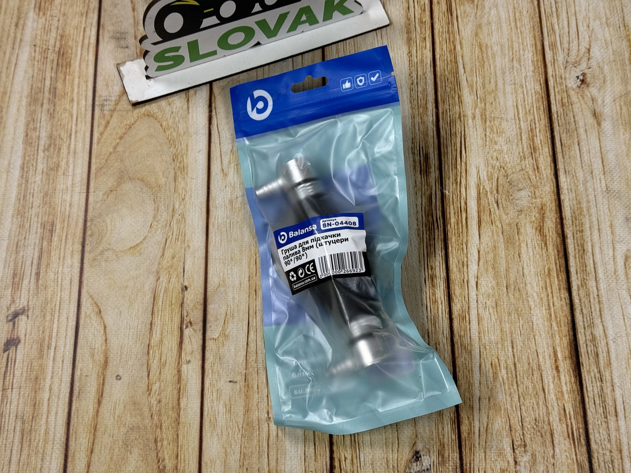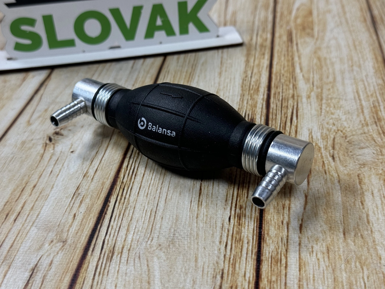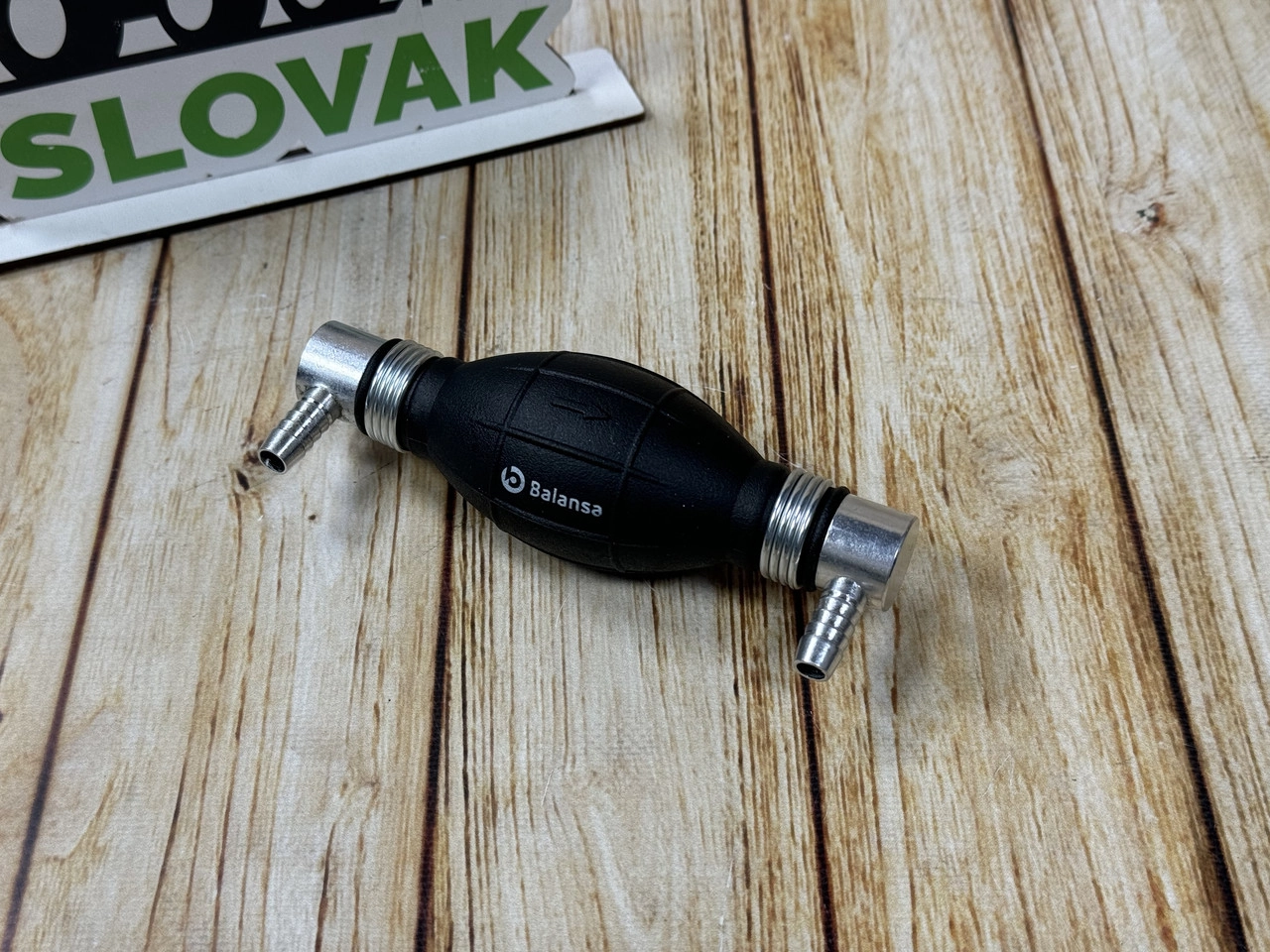 Груша для підкачування палива 8мм (штуцера 90*/90*) Balansa Груша для підкачування палива Balansa BN-04421 — це ручний паливний насос, який використовується для заповнення паливної системи автомобіля, трактора чи іншої техніки перед запуском двигуна. Оснащена штуцерами 12 мм: один прямий, другий під кутом 90°, що забезпечує зручність встановлення навіть у важкодоступних місцях. Характеристики: Модель: BN-04407 Бренд: Balansa Діаметр штуцера: 6 мм Тип з’єднань: прямо / 90° Матеріал корпусу: гума + метал Призначення: підкачування дизельного або бензинового палива Сумісність: універсальна (авто, трактори, човни, дизельні системи) Переваги: Зручна ручна підкачка без потреби в електриці Міцна конструкція та герметичність Універсальне використання для різних типів техніки Захист від протікання завдяки надійним штуцерам Застосування: Груша для підкачування використовується у паливних системах автомобілів, тракторів, човнів, дизельних генераторів — для заповнення магістралі паливом перед запуском двигуна.