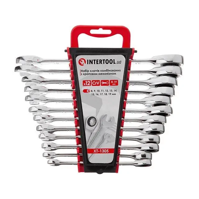 Набор ключей рожково-накидных с трещоткой 8–19 мм (11 шт) (ХТ-1304) (Intertool)