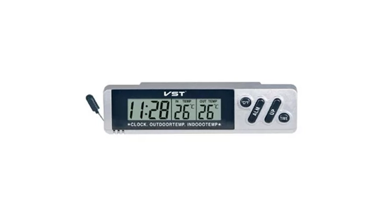 Автомобільний термометр VST 7067 з годинником (внутрішня + зовнішня температура)