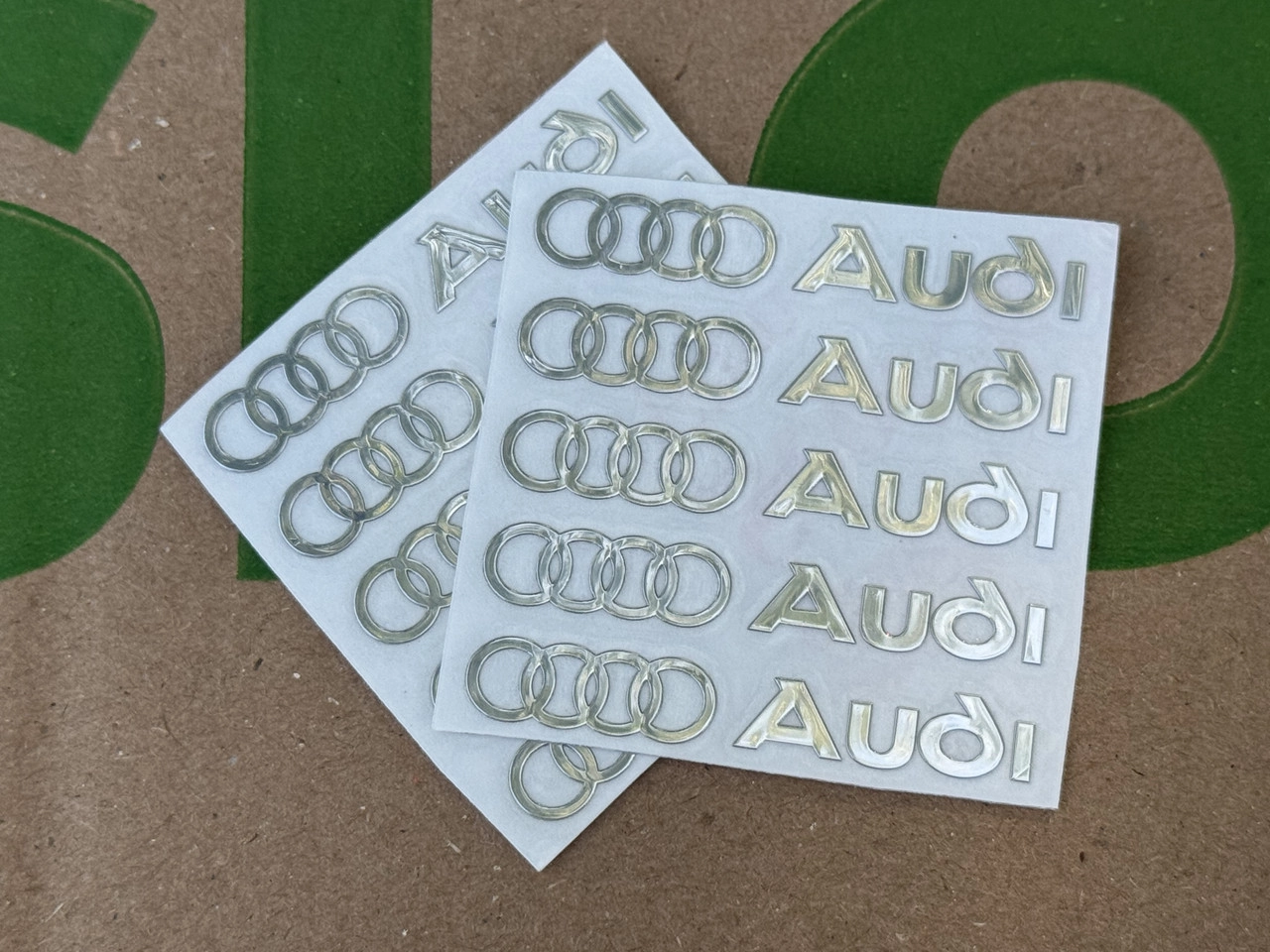 Набір металевих 3D наклейок AUDI (логотип + надпис, хром, 10 шт)