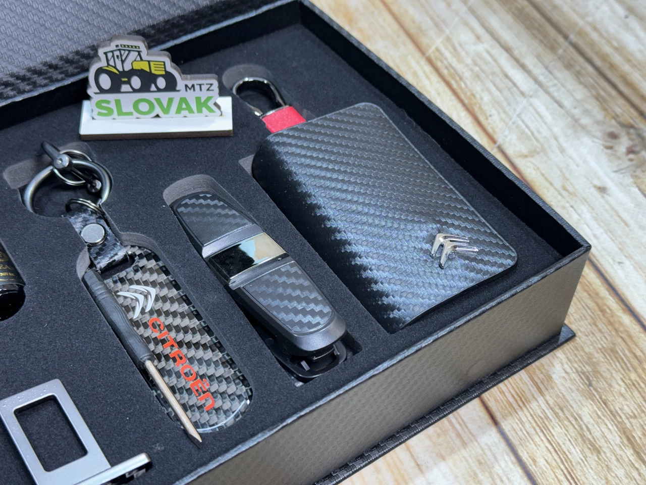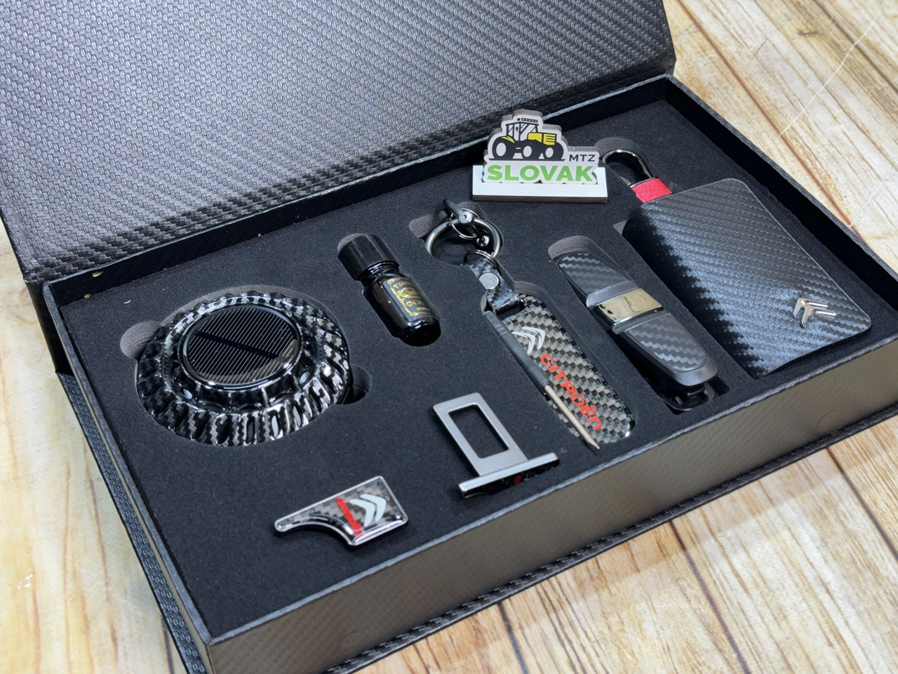 Подарунковий бокс для авто Citroen (Ароматизатор, заглушки, брелок, тримач окулярів, ключниця)