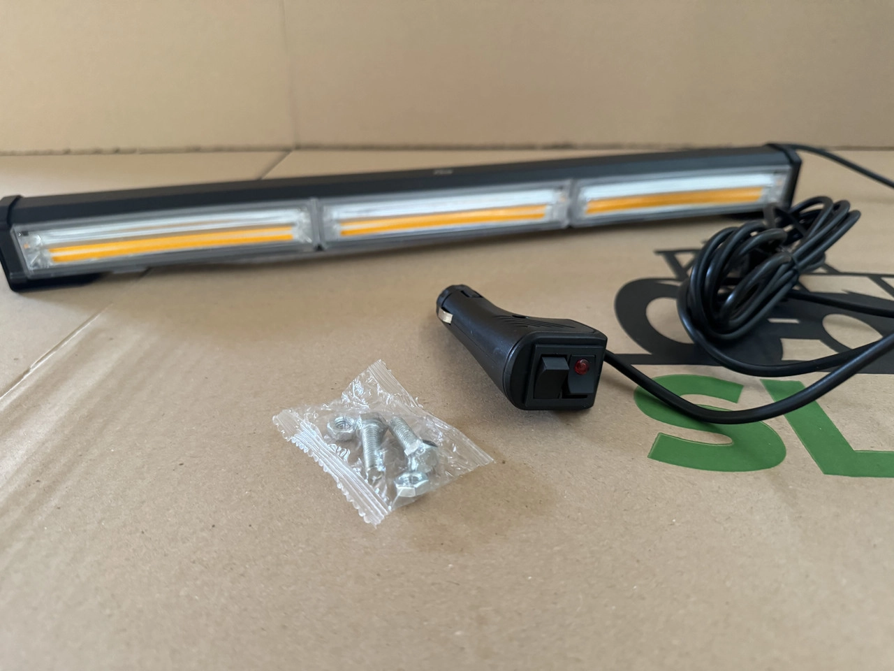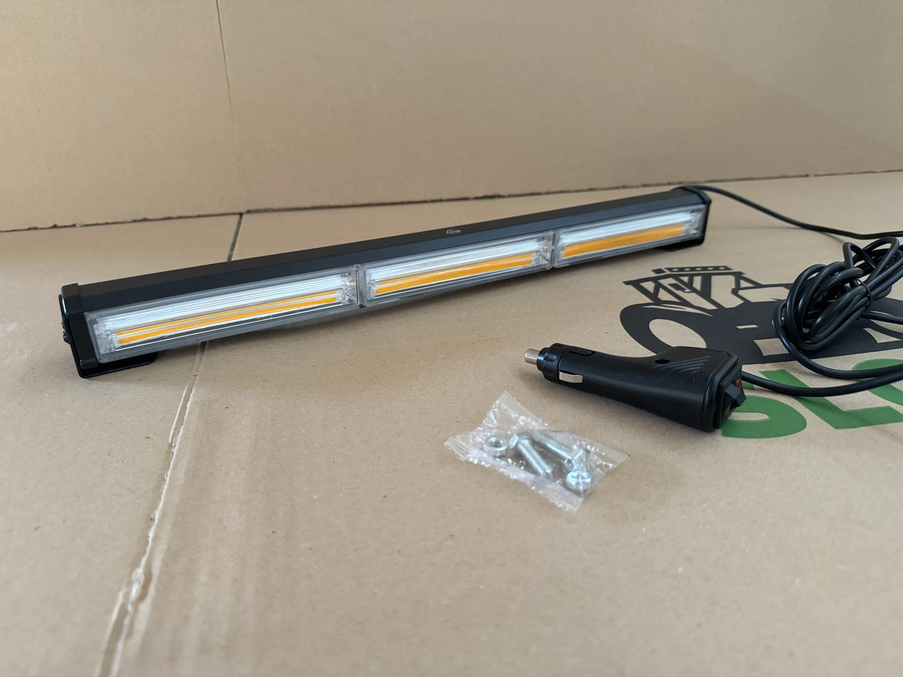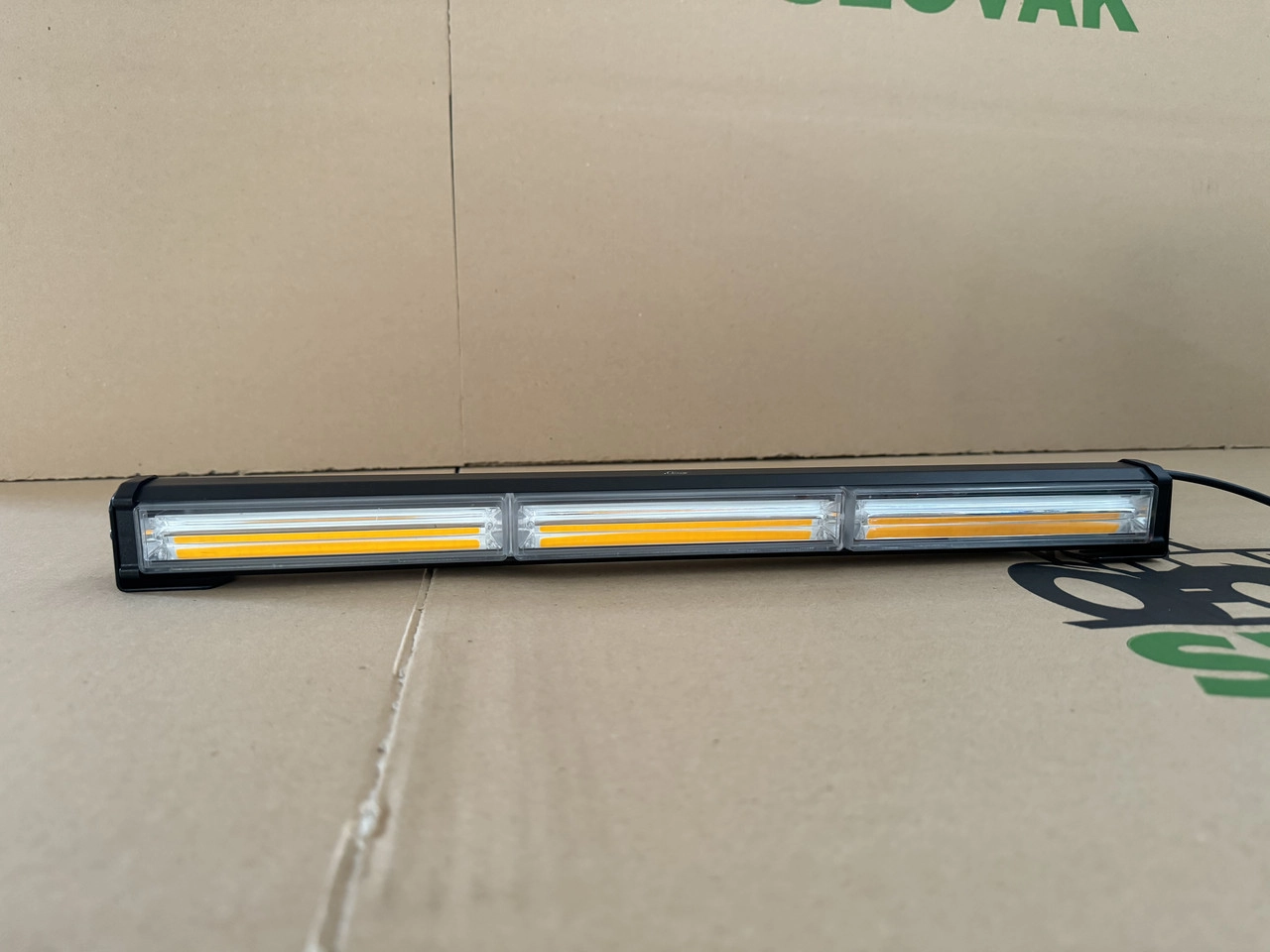 LED балка стробоскоп жовта 3 секції (45см) (3P-COB) LED балка стробоскоп жовта (3 секції, 45 см, 3P-COB) — потужне сигнальне освітлення для тракторів, автомобілів, спецтехніки, евакуаторів і комунальних машин. Оснащена трьома секціями COB-світлодіодів, що забезпечують яскраве, рівномірне та далекобійне світіння. Підключається через прикурювач 12В, має зручну кнопку керування прямо на роз’ємі. Переваги: Працює від прикурювача 12В: просте підключення без потреби у додатковому монтажі. Кнопка на штекері: зручне керування ввімкненням і вимкненням прямо з кабіни. 3 COB-секції: висока інтенсивність світла та широке охоплення зони освітлення. Міцний корпус: стійкий до вологи, пилу, ударів та вібрацій. Комплект кріплень: для швидкого і надійного встановлення. Характеристики: Тип LED балка стробоскоп Довжина 45 см Кількість секцій 3 Тип світлодіодів COB (3P) Живлення 12 В (через прикурювач з кнопкою) Колір світіння Жовтий Матеріал корпусу Алюміній + полікарбонат Комплектація Балка, кабель живлення, кріплення Стан Новий LED стробоскоп 3P-COB (45 см) — це надійне сигнальне рішення з живленням від прикурювача і кнопкою керування. Ідеальний вибір для спецтехніки, тракторів, евакуаторів і дорожніх служб.
