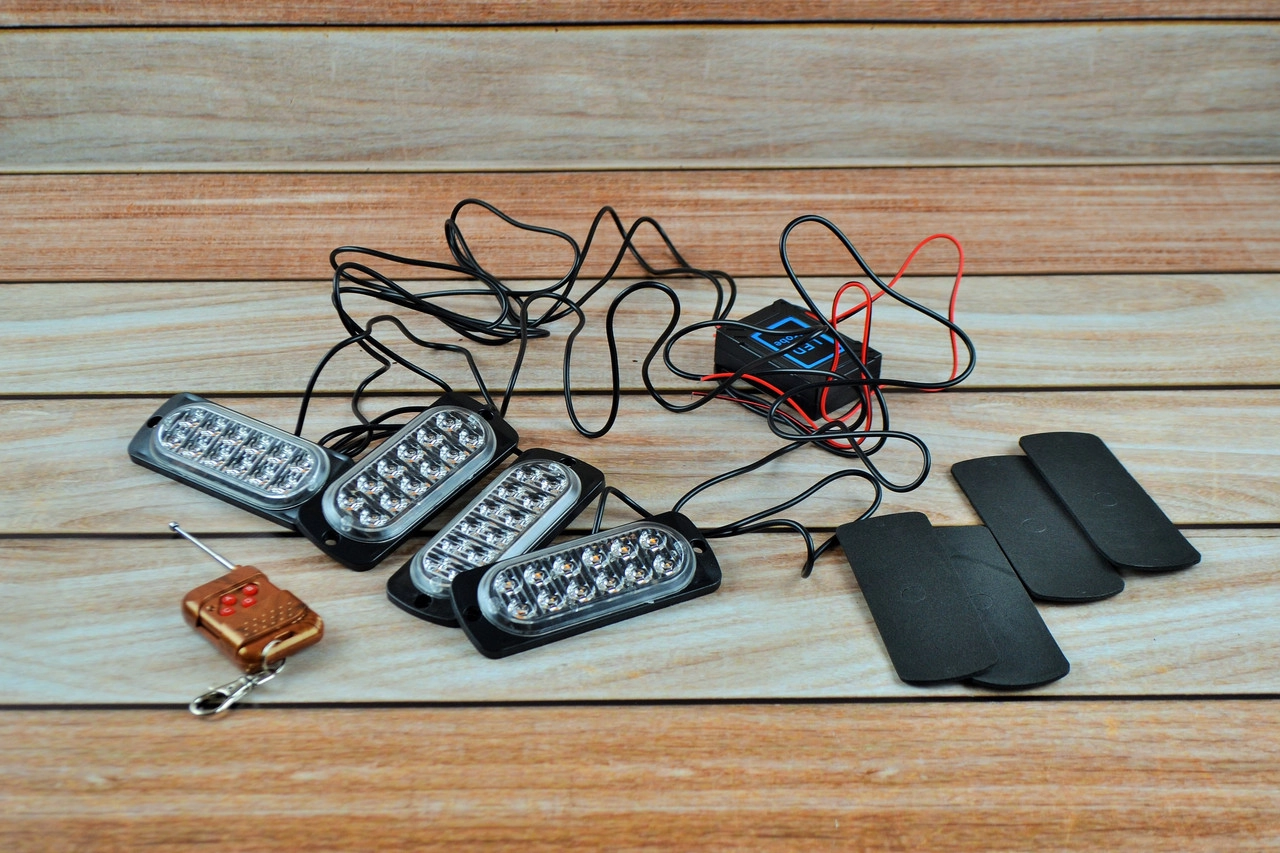 Стробоскоп LED з пультом 4 шт. LED RED-BLUE NEW (Червоно синій стробоскоп)