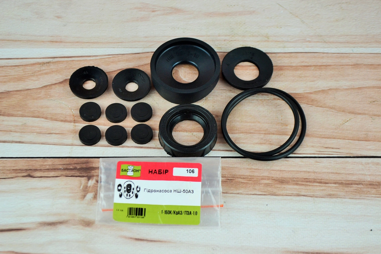 Пропонуємо купити у нас ремкомплект НШ 50 АЗ, до складу якого входять наступні комплектуючі: 1. Манжета валу гідронасосу НШ-50А3 1 2. Кільце кришки гідронасосу НШ-50А3 1 3. Прокладка кришки гідронасосу НШ-50А3 1 4. Манжета торцевого ущільнення велика гідронасосу НШ-50А3 2 5. Манжета радіального ущільнення гідронасосу НШ-50А3 1 6. Манжета торцевого ущільнення мала гідронасосу НШ-50А3 6 Якщо вам потрібно підібрати будь-який інший Рем-комплект. Ви можете просто зателефонувати нам, і сказати на що саме потрібно. Вибирайте лише якісний товар Slovak-mtz