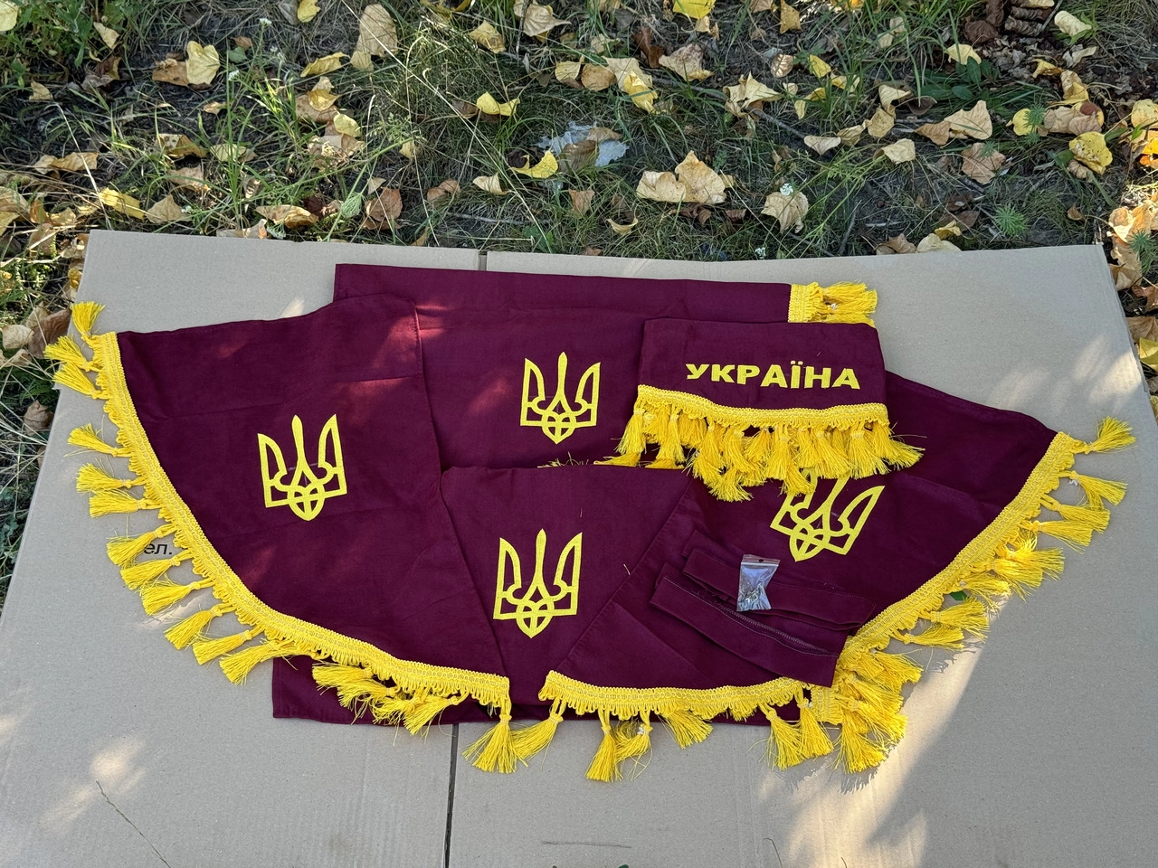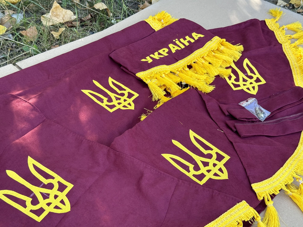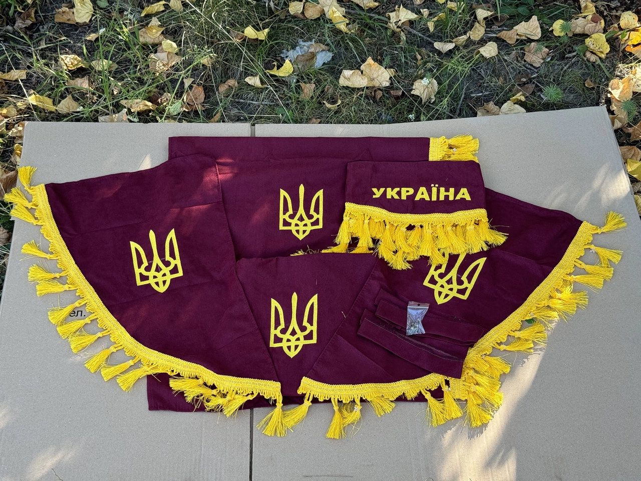 Повний комплект штор у кабіну МТЗ-80/82 (УКРАЇНА) (Велика кабіна, бордові штори) + кріплення